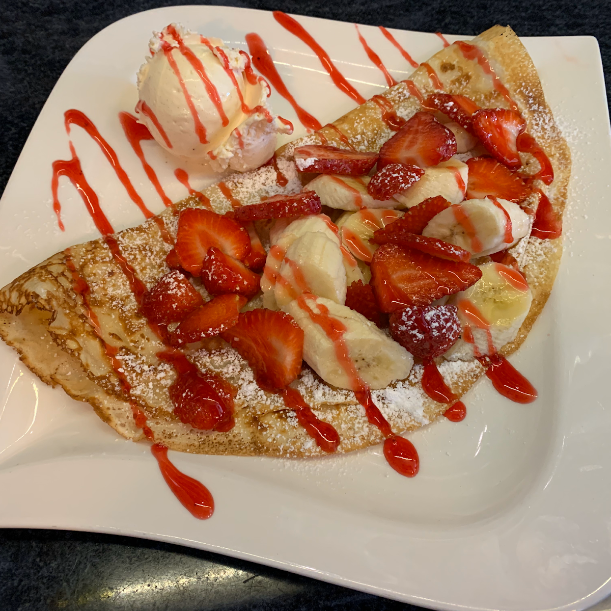Another favorite that stands out on the menu is Spaghetti Eis, a fun and iconic German dessert. It’s cleverly designed to resemble a plate of spaghetti, but instead of pasta, you get smooth vanilla ice cream pressed into noodle-like strands, topped with strawberry sauce and a sprinkle of white chocolate. It’s playful, nostalgic, and surprisingly satisfying.